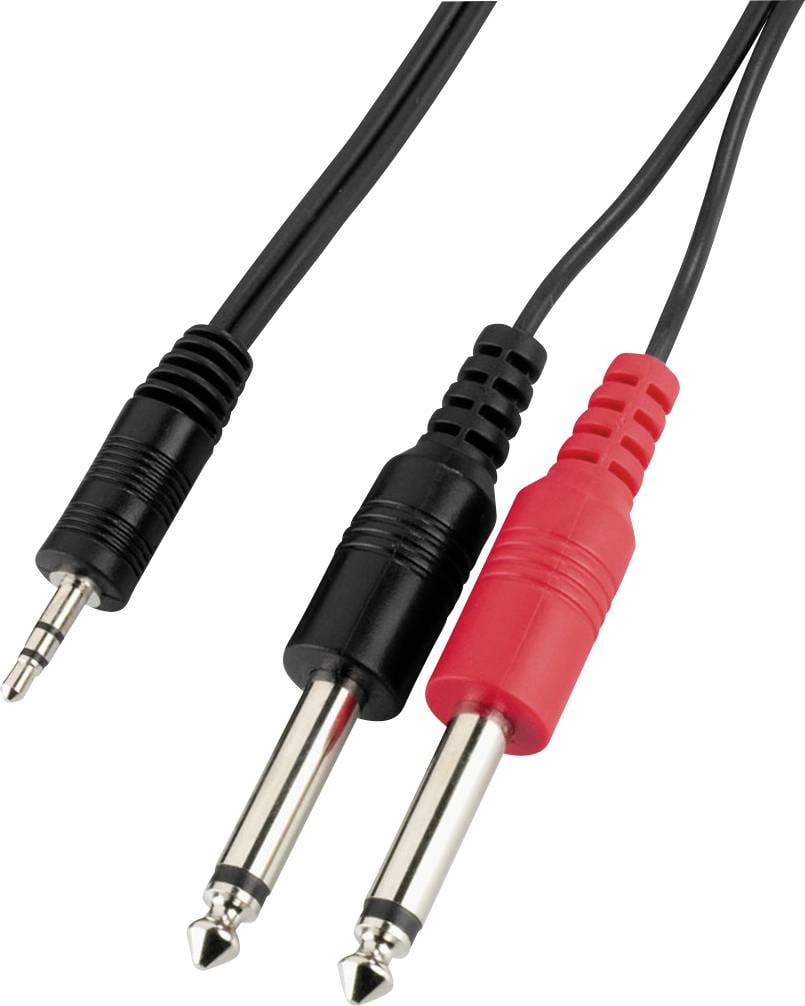 Monacor 0066800 Jack Audio Átalakító kábel [2x Jack dugó, 6,3 mm-es (mono) - 1x Jack dugó, 3,5 mm-es] 2 m Fekete